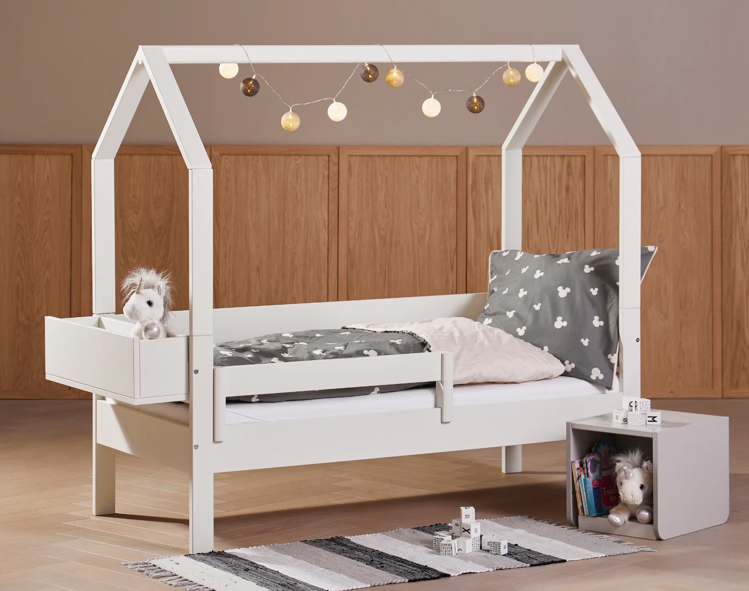 Huxie himmelseng fås i standardmål, der passer til de fleste børnemadrasser. Konstruktionen er gennemtænkt, så den både er stabil og nem at samle.