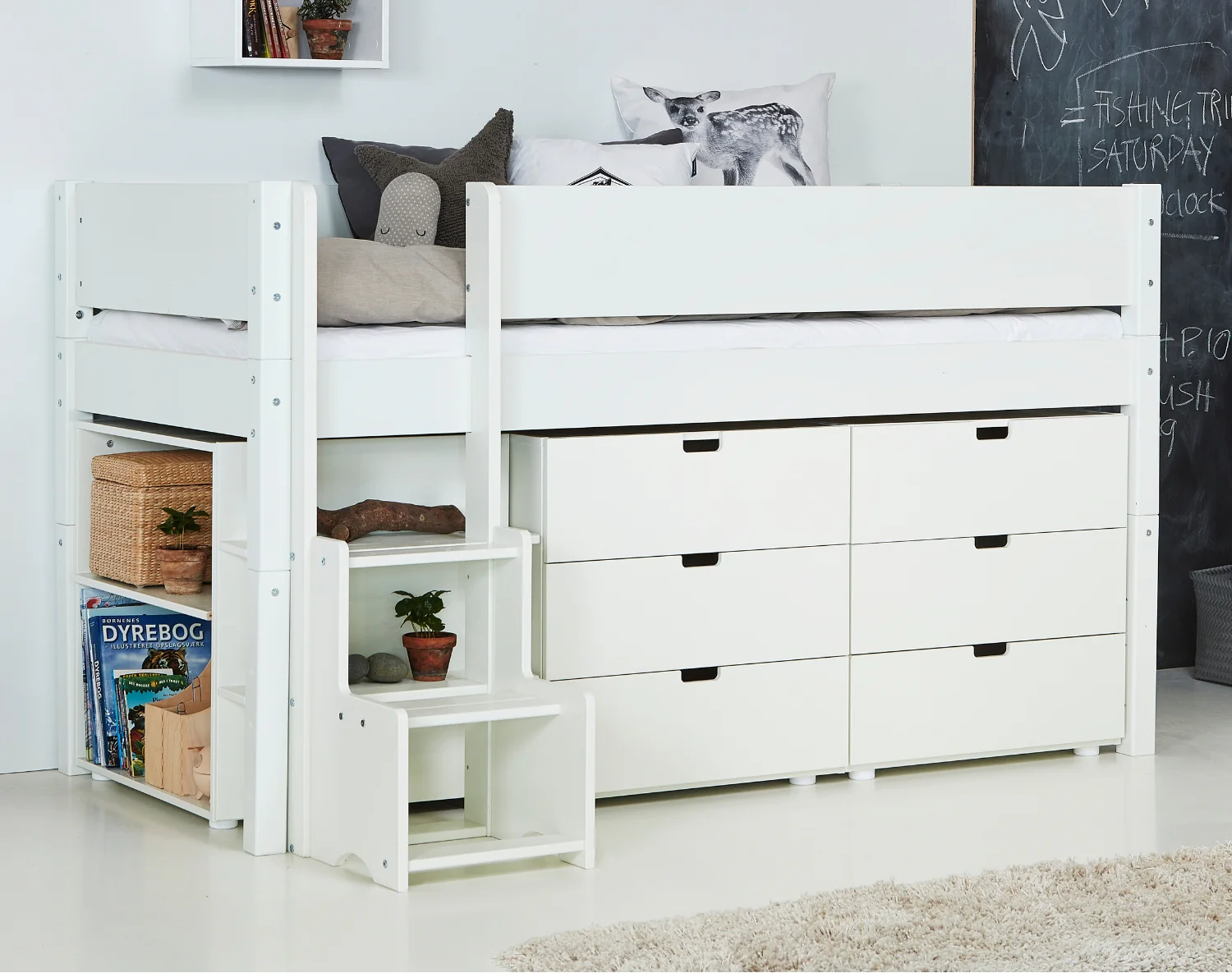 Designet til at passe til juniorsenge og køjesenge med udtræksseng, men kan også bruges som en enkeltstående stige. Vælg mellem en lav eller høj version, og få ekstra sikkerhed med den medfølgende skridsikre tape.